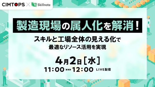 株式会社シムトップス(本社:東京都品川区、代表取締役社長:水野貴司)は、株式会社Skillnote様との共催セミナー『製造現場の属人化を解消!スキルと工場全体の見える化で最適なリソース活用を実現』を2025年4月2日に開催いたします。