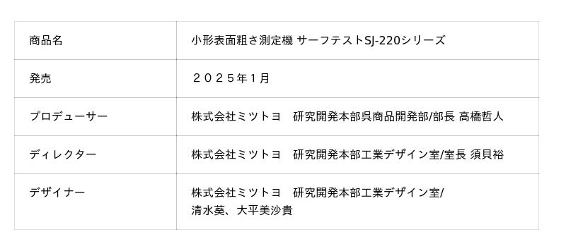 株式会社ミツトヨ(本社:川崎市高津区、代表取締役社長:沼田 恵明)は、このたび「小型表面粗さ測定機 サーフテスト SJ-220 シリーズ」が、2025年度グッドデザイン賞(主催:公益財団法人日本デザイン振興会)を受賞したことをお知らせいたします。