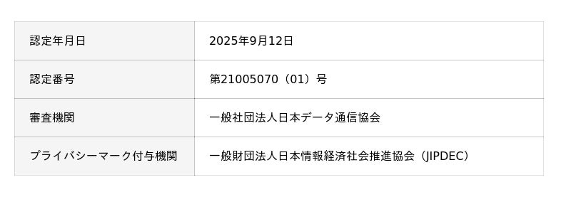 今回のプライバシーマーク取得により、日本産業規格「JIS Q 15001個人情報保護マネジメントシステム-要求事項」に適合した管理体制が第三者機関により認証されたことになり、お客様により一層の安心をご提供できる体制が整いました。