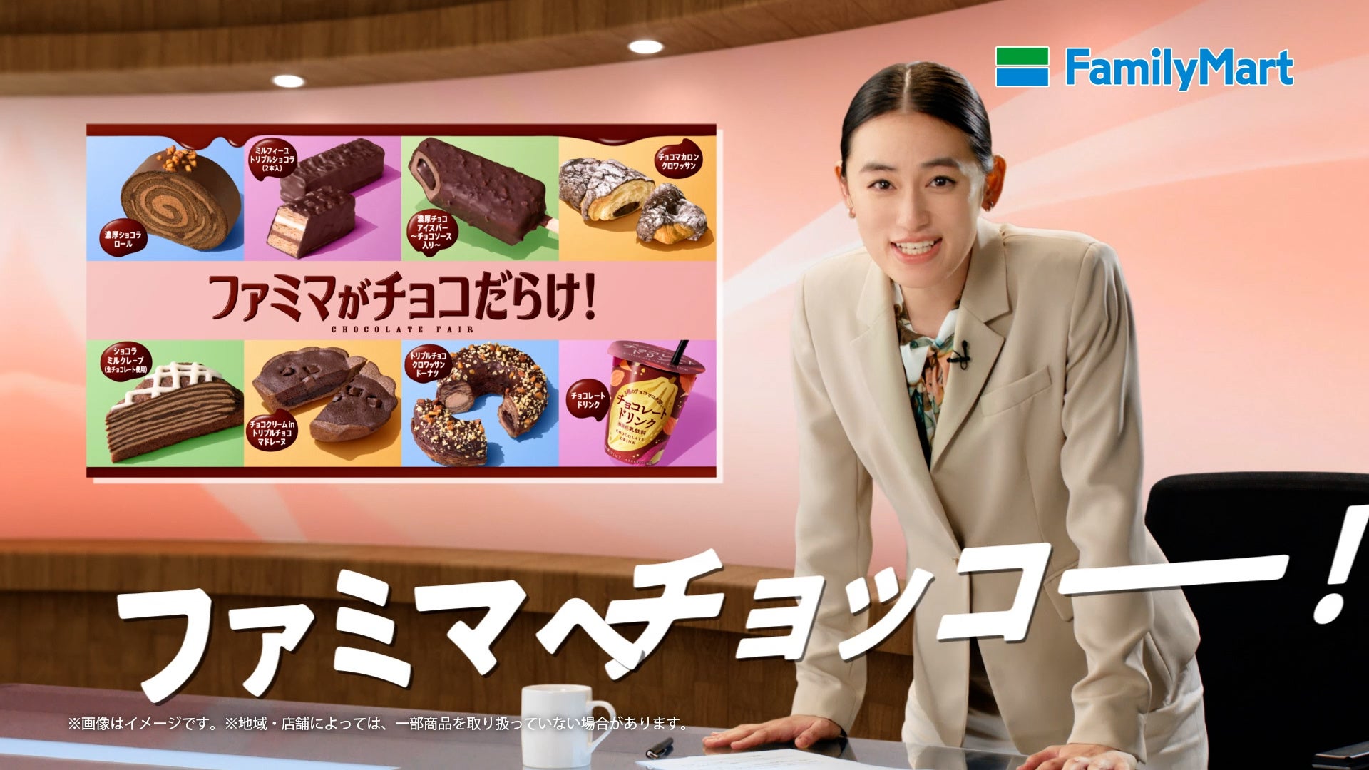 新TVCMでは、ファミマがチョコだらけになっていることを、ニュース番組のキャスターとして八木さんが伝えます。今年は、ニュース番組の中継先から吉田さんがリポーターとして登場。キャンペーン対象商品である全11商品のチョコスイーツに、3種のチョコが詰まっていることを真剣に伝えている最中に、チョコスイーツを試食すると「うまぁ~」と恍惚の表情を浮かべうっとり。「ひとくちで3度しあわせ」を実感し、思わずリポートを放棄してしまう吉田さんと、そんな吉田さんを見て我慢できなくなった八木さんが、スタジオから飛び出していくオチにぜひご注目ください。