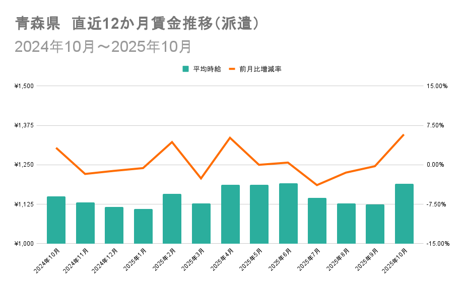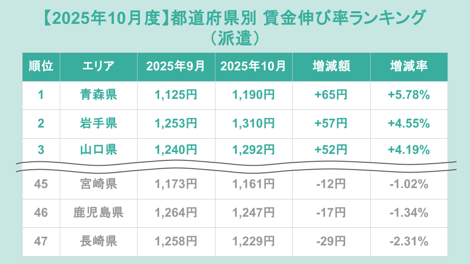 求人サイト主要9媒体から雇用形態別に分析!派遣では青森県が前月比+5.78%で1位【2025年10月度 都道府県別 賃金伸び率ランキング】