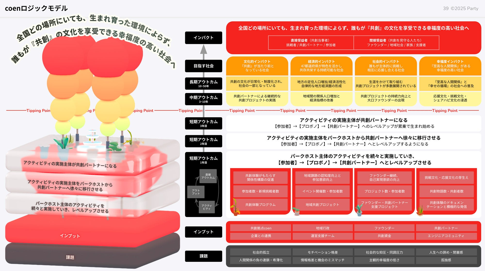 株式会社Party(所在地:東京都千代田区富士見1丁目3番11号 富士見デュープレックスB's 4階、代表:葉倉 歩)は、共創拠点「coen(コーエン)」の全国展開を加速するため、個人 / 法人ファウンダー300名の募集を開始いたします。