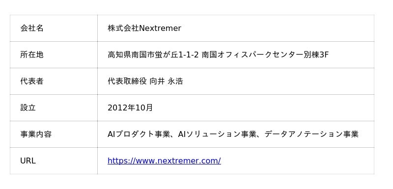 Nextremerは、今回の実証で得られた知見をもとに、観光・自治体領域におけるAI活用のさらなる可能性を探っていきます。 今後は、観光案内所以外にも、商業施設・交通・行政窓口など、多様な現場への展開を検討し、地域課題の解決と現場DXの推進を支援してまいります。 人とAIが協働し、より豊かな顧客体験を創出する社会の実現を目指します。会社概要