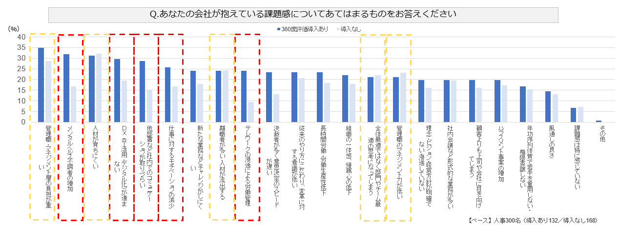 【360度フィードバック導入/非導入企業比較 会社が抱える課題感 (人事)】