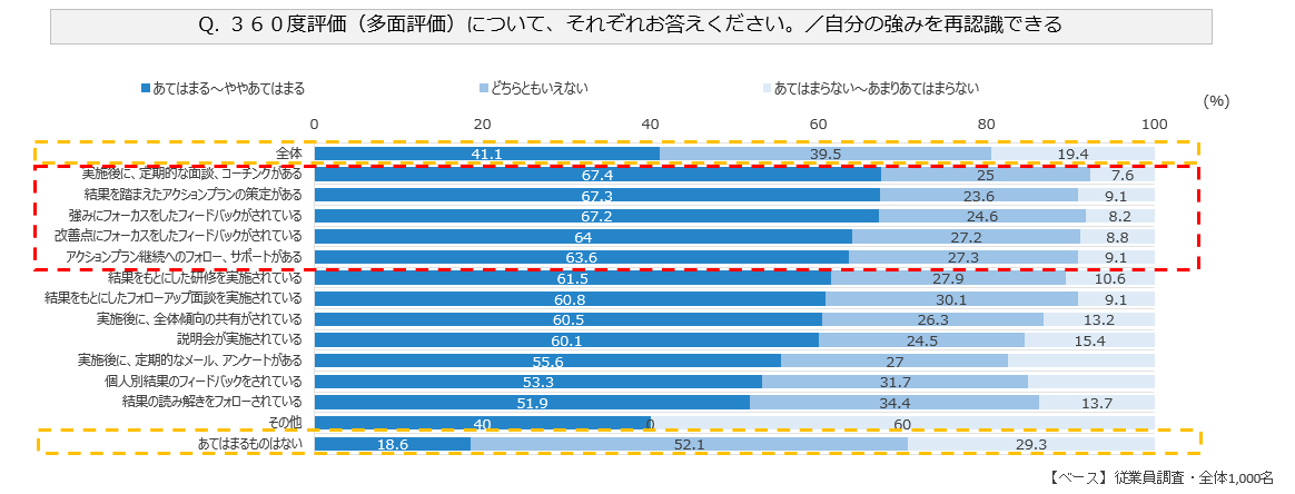 1.社員調査1,000:360度評価(多面評価)を会社が導入、回答者or対象者