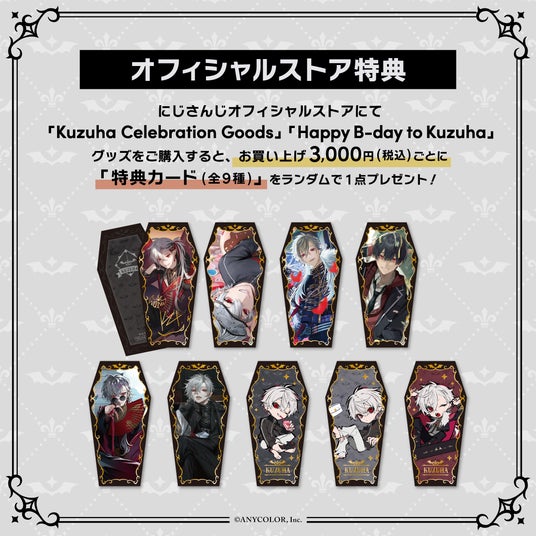 ANYCOLOR株式会社(本社:東京都港区 代表取締役:田角陸、以下「当社」)が運営するVTuber / バーチャルライバーグループ「にじさんじ」は、「Kuzuha Celebration Goods 」「Happy B-day to Kuzuha」グッズを2025年11月8日(土)12時から販売開始いたします。