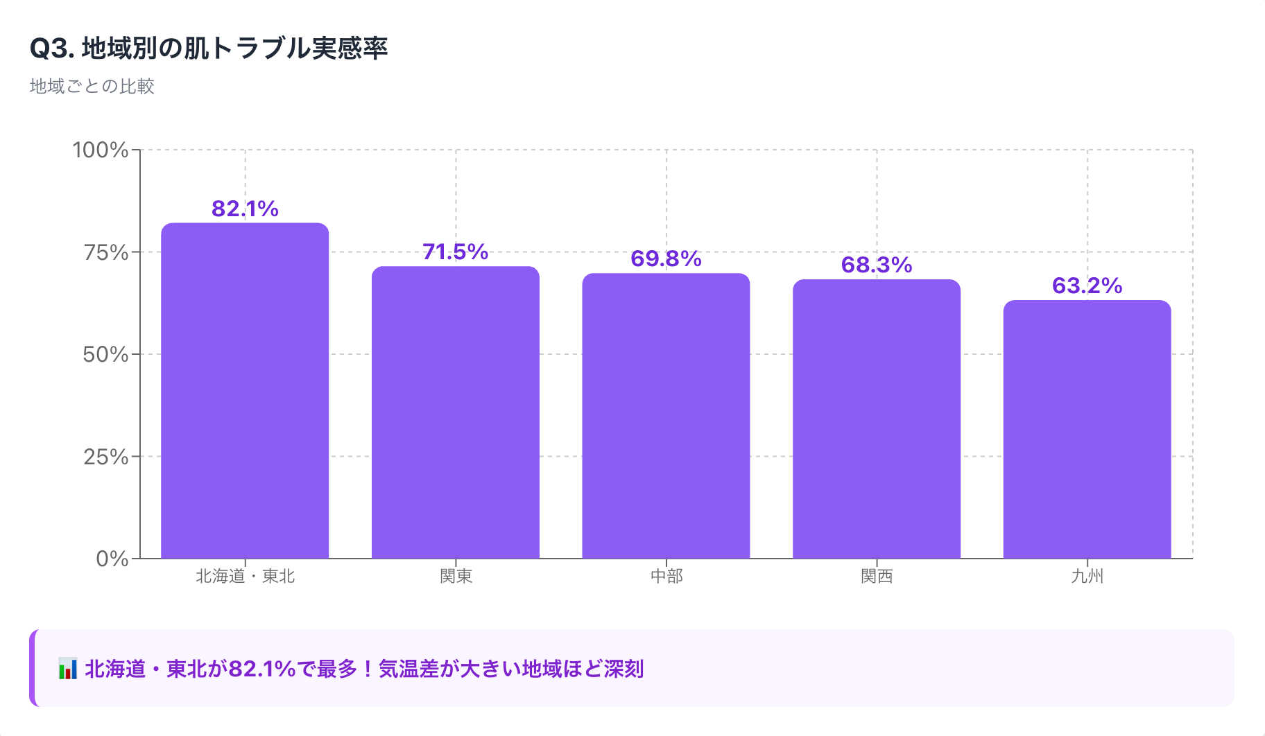 気温差が大きい地域ほど、肌への影響が顕著に表れていることが分かります。