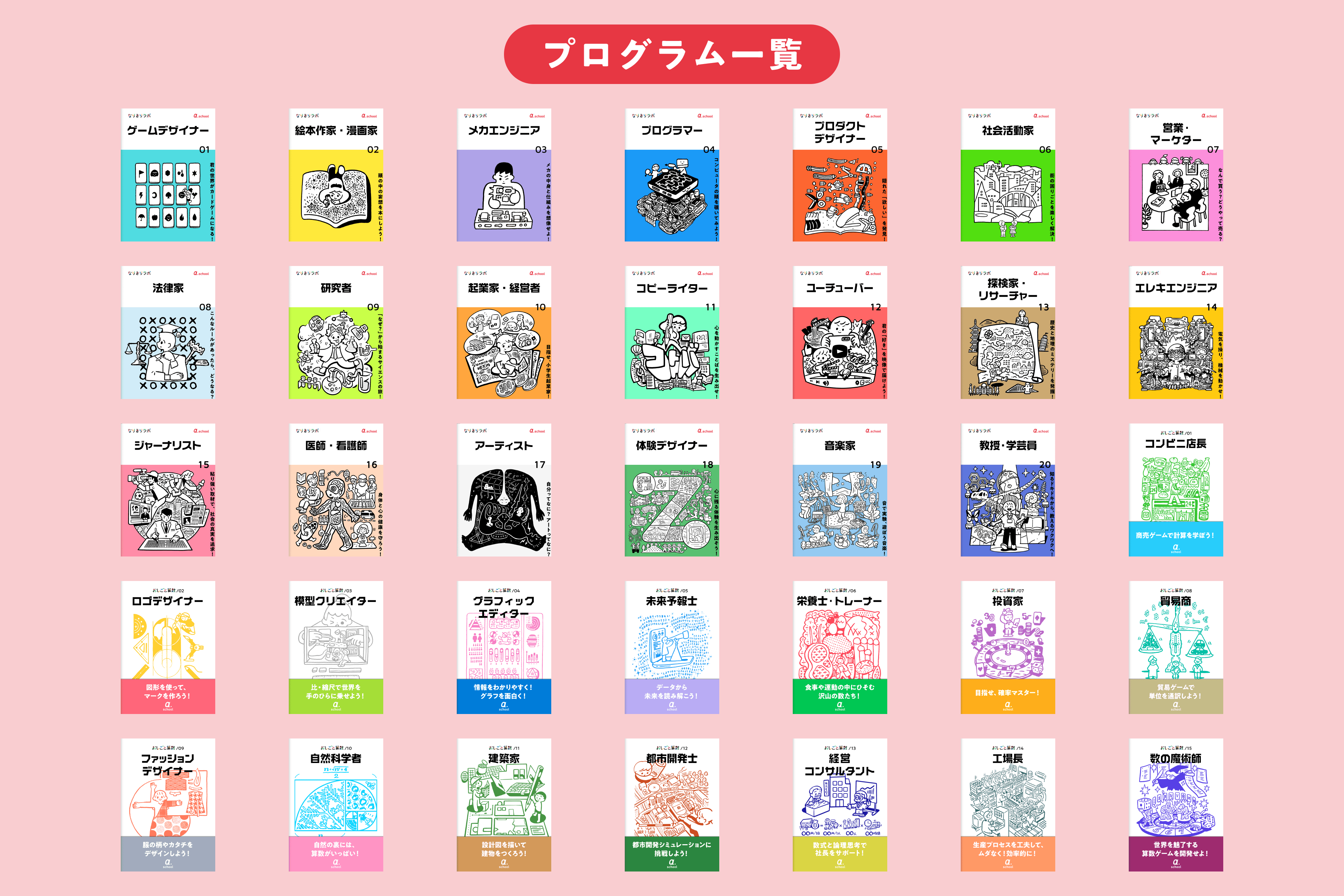 「なりきりラボ(R)」は、仕事を切り口に、教科の学びや実生活とのつながりを実感しながら、非認知能力を育む探究学習プログラム・シリーズです。兄弟版の「おしごと算数(R)」とあわせて、全35種類のプログラムを展開しています。