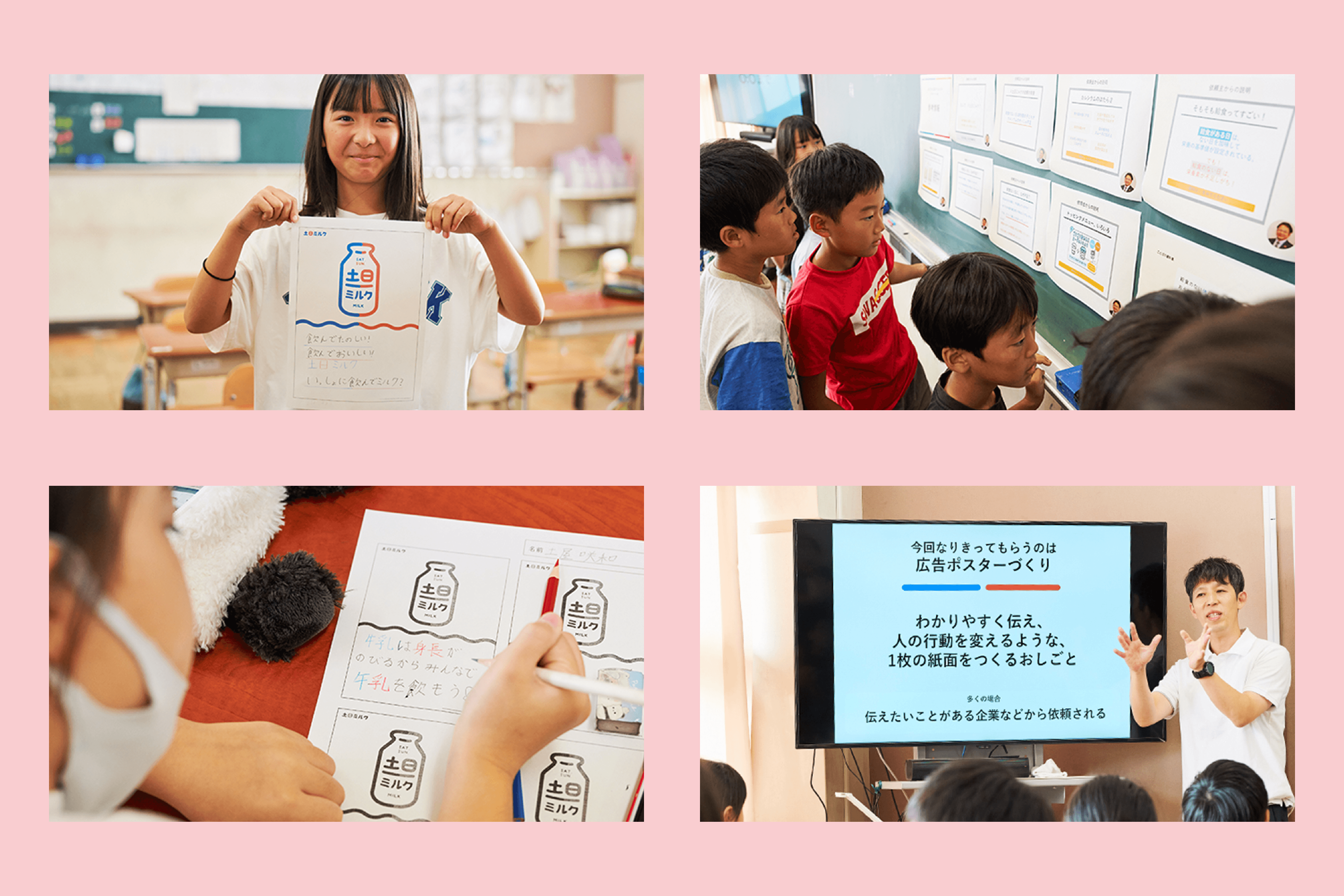 Jミルクが実施する「学校給食がない日も牛乳を飲もう」をテーマとした「土日ミルク」活動の一環として、教育プログラム「土日ミルク なりきり広告クリエイター」を共同開発しました。これまでに全国300校以上で活用され、数千人の子どもたちが参加しています。