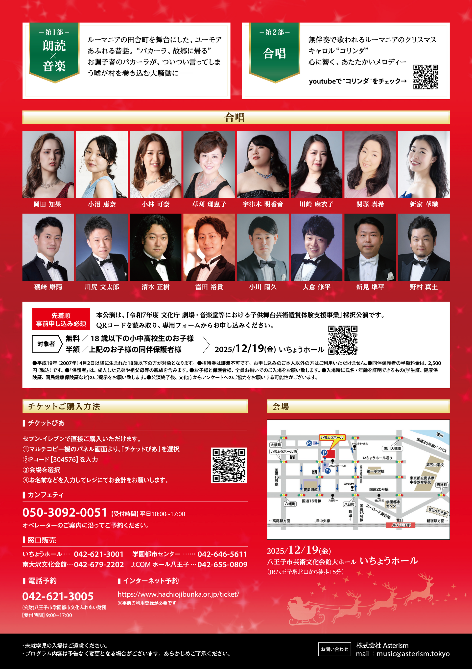 八王子公演に声優 神尾 晋一郎出演決定!『ルーマニアのクリスマス』 ルーマニアの昔話朗読 声楽歌手の合唱で贈るクリスマスコンサート