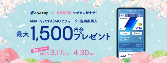 ANA Pay × PASMO で始める新生活! チャージ・定期券購入で最大 1,500円分プレゼントキャンペーンを開始