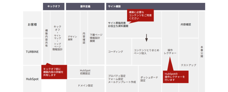 HubSpotの初期設定は構築時に実施しますので、構築後すぐにマーケティング活用が可能です。