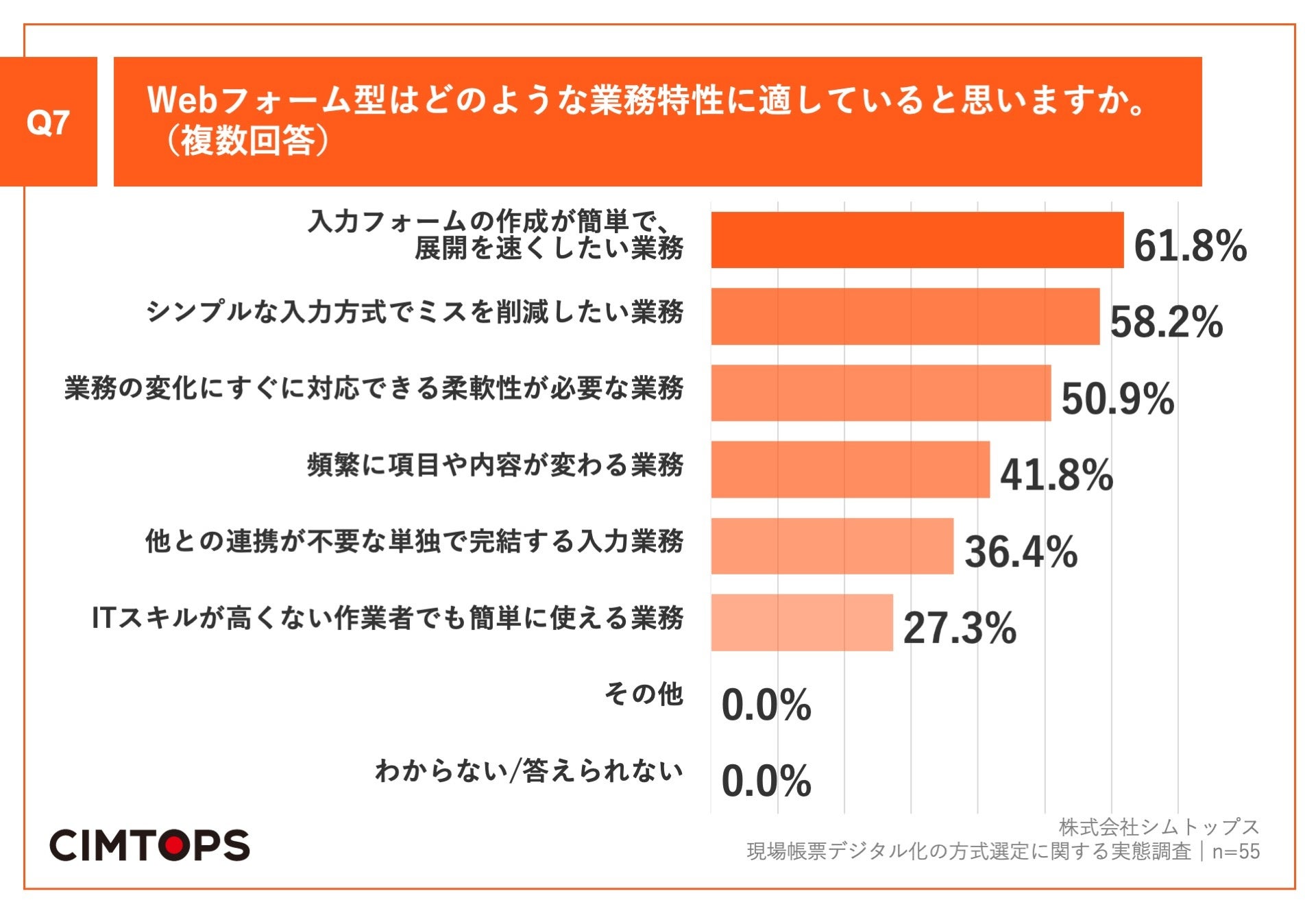 Q7.Webフォーム型はどのような業務特性に適していると思いますか。(複数回答)