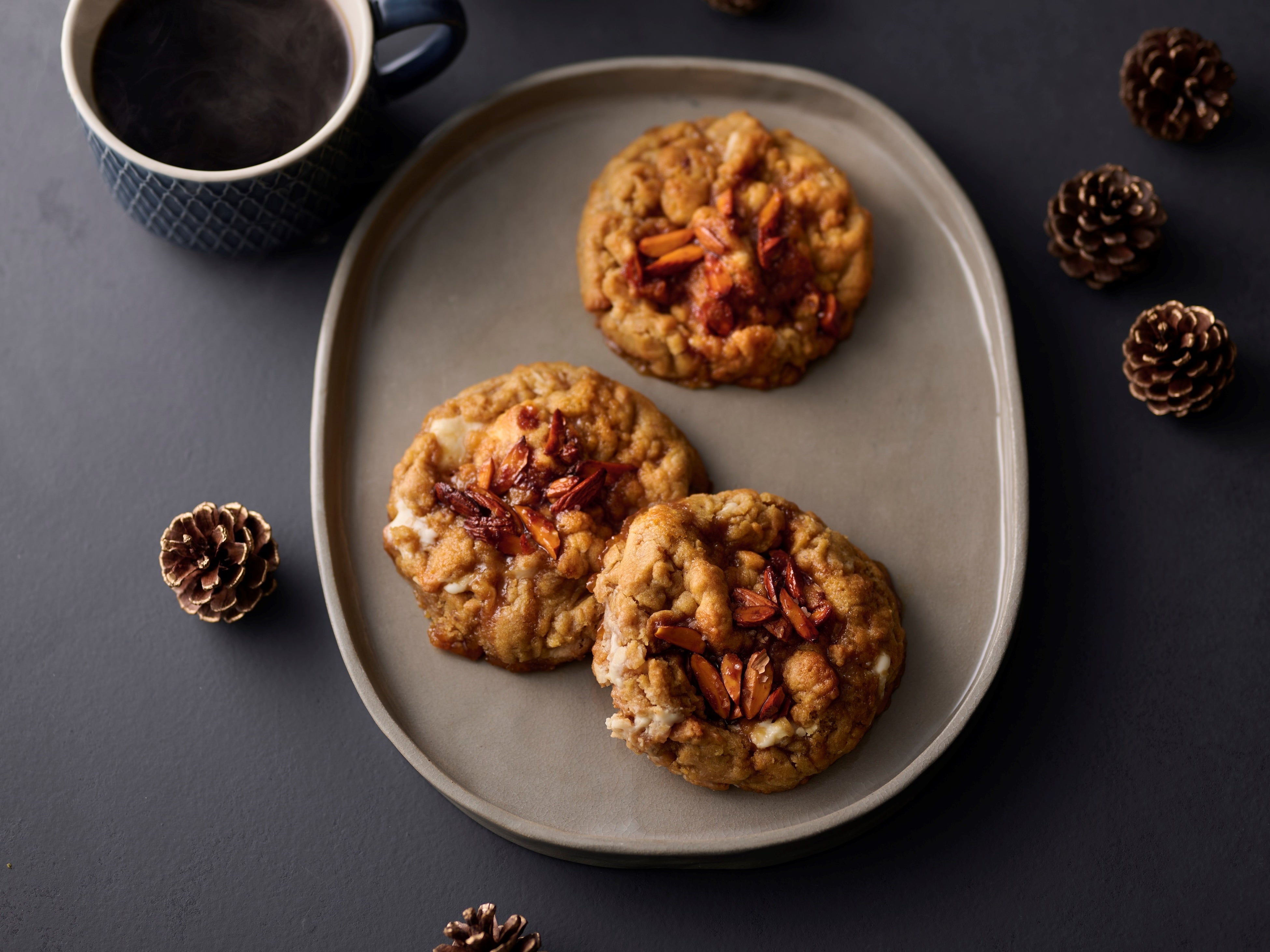 卵やバターを使用しないプラントベース専門店のソフトな新食感のクッキーです。濃厚でリッチな味わいのホワイトチョコレートと塩キャラメルが合わさって、甘じょっぱい絶妙なバランスを奏でます。トップに飾られたローストアーモンドのカリッとした食感がアクセント。1つでも満足感のあるアメリカンサイズです。