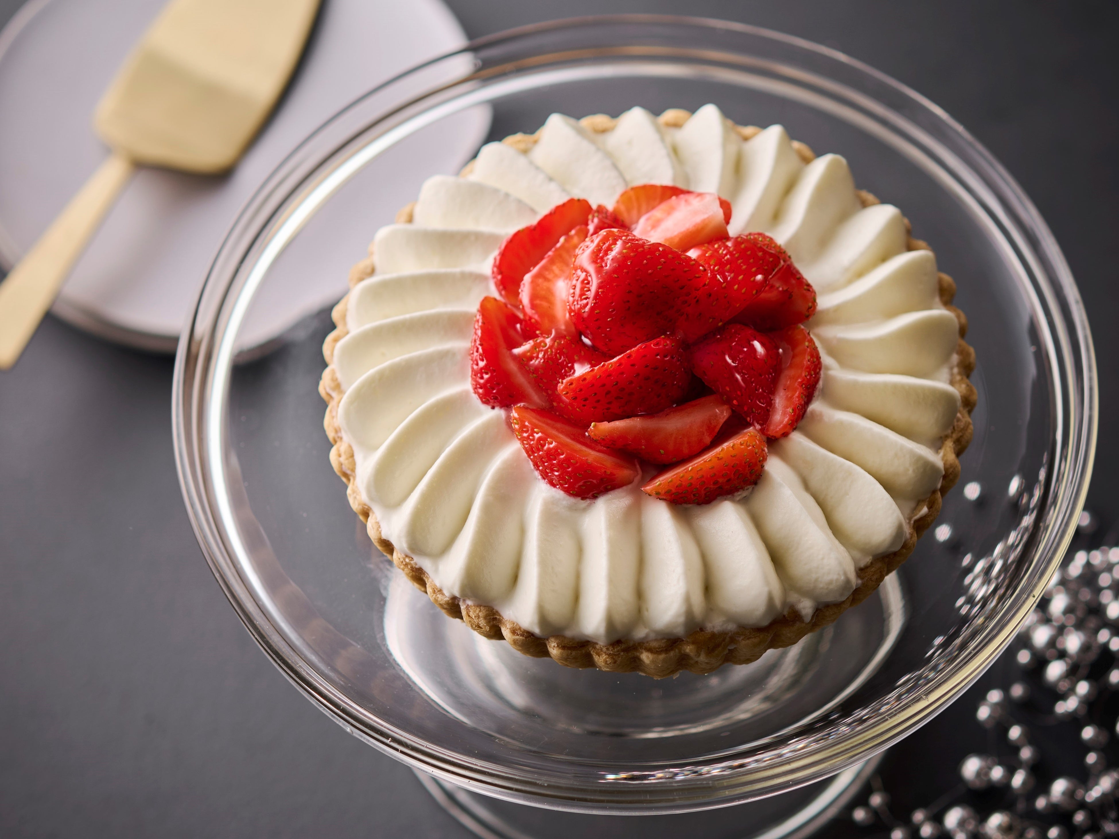 フルーツを使用した多彩なタルトが人気の専門店から、クリスマス限定のタルトが登場します。その日に焼き上げたパイ生地は、バターが香り、サクサク軽やかな食感。中にはコクのあるカスタードクリームを詰めて、たっぷりの生クリームとフレッシュな国産いちごで美しく飾りました。
