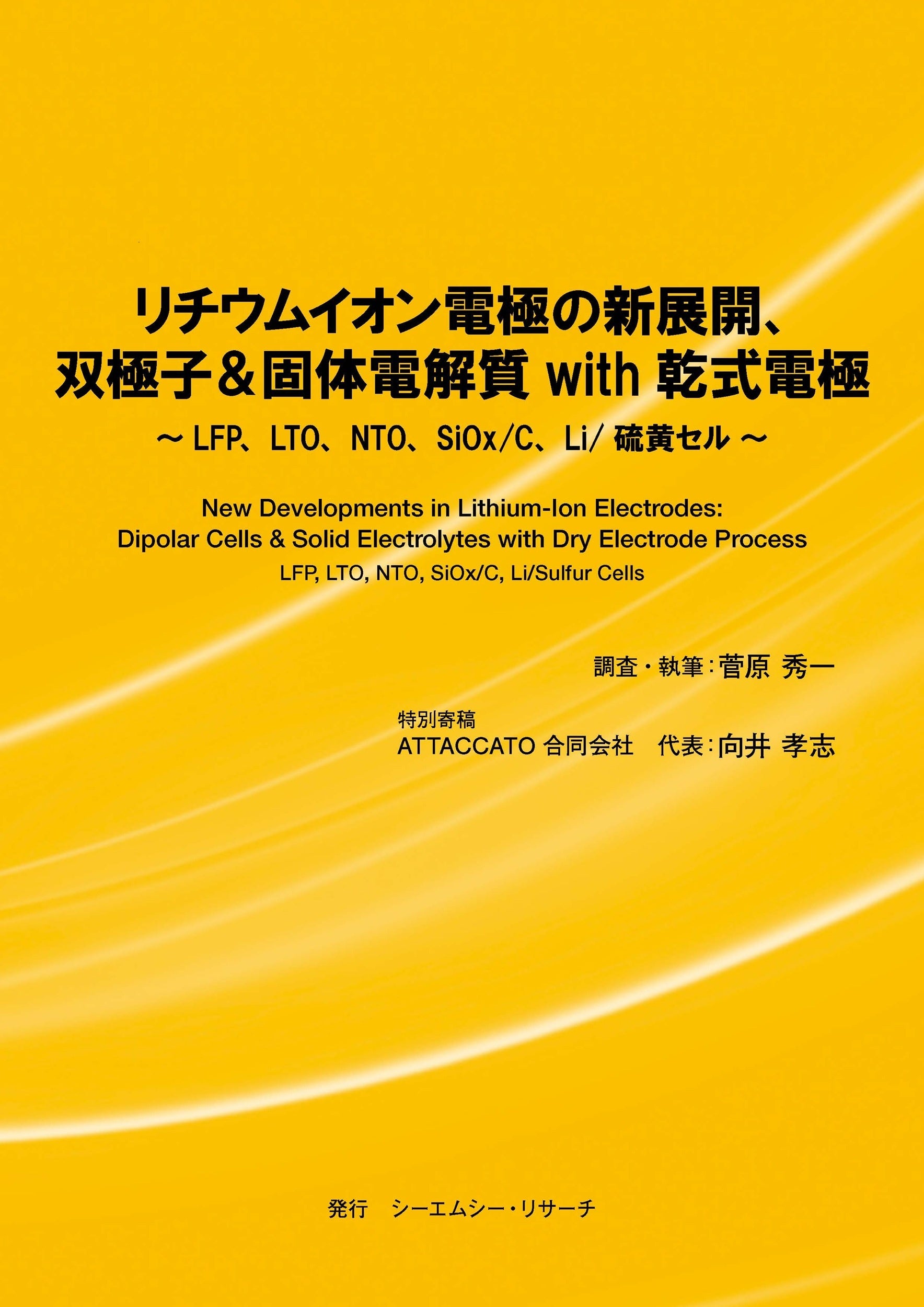 【新刊案内】リチウムイオン電極の新展開、双極子&固体電解質 with 乾式電極~ LFP、LTO、NTO、SiOx/C、Li/硫黄セル ~ 調査・執筆:菅原 秀一 発行:(株)シーエムシー・リサーチ