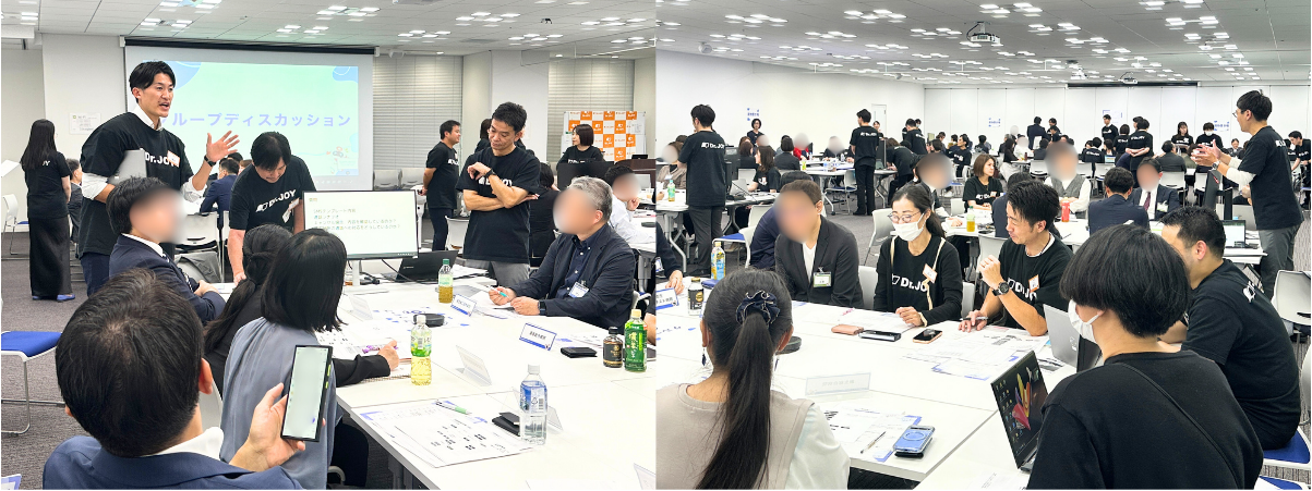名刺交換・交流、講演会、パネルディスカッション、グループディスカッション、Dr.JOY他事業部の製品紹介、懇親会を実施しました。AI電話を中心とした運用改善の実例や、現場での課題解決を多角的に議論しました。