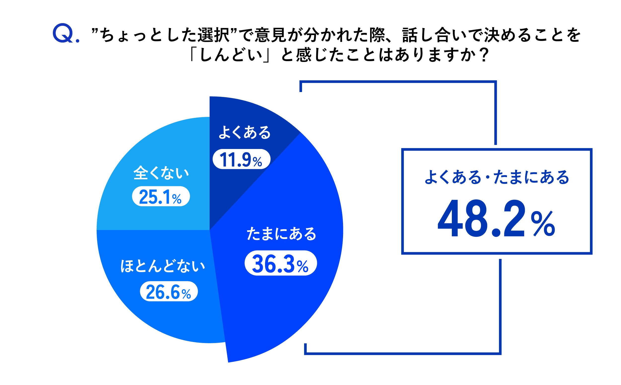 一方で、約半数(48.2%)が「話し合いがしんどい」と感じていることも明らかになりました。