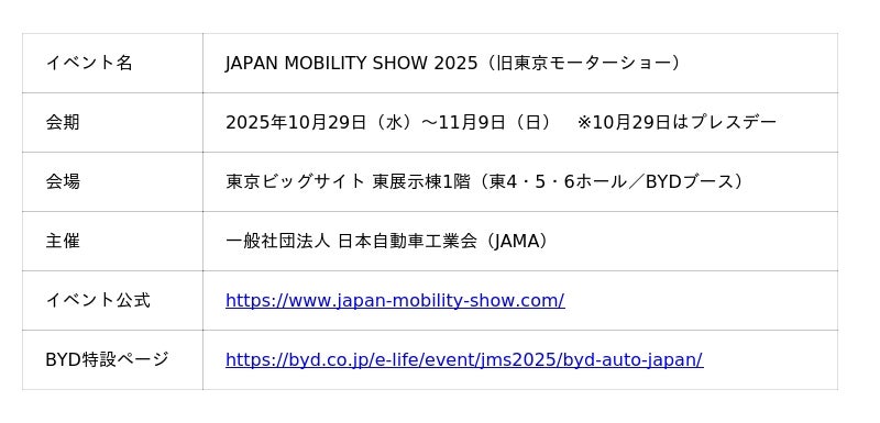 10月29日(水)<※1>~11月9日(日)に、東京ビッグサイトで開催される「JAPAN MOBILITY SHOW 2025(ジャパンモビリティショー)」に出展されます。