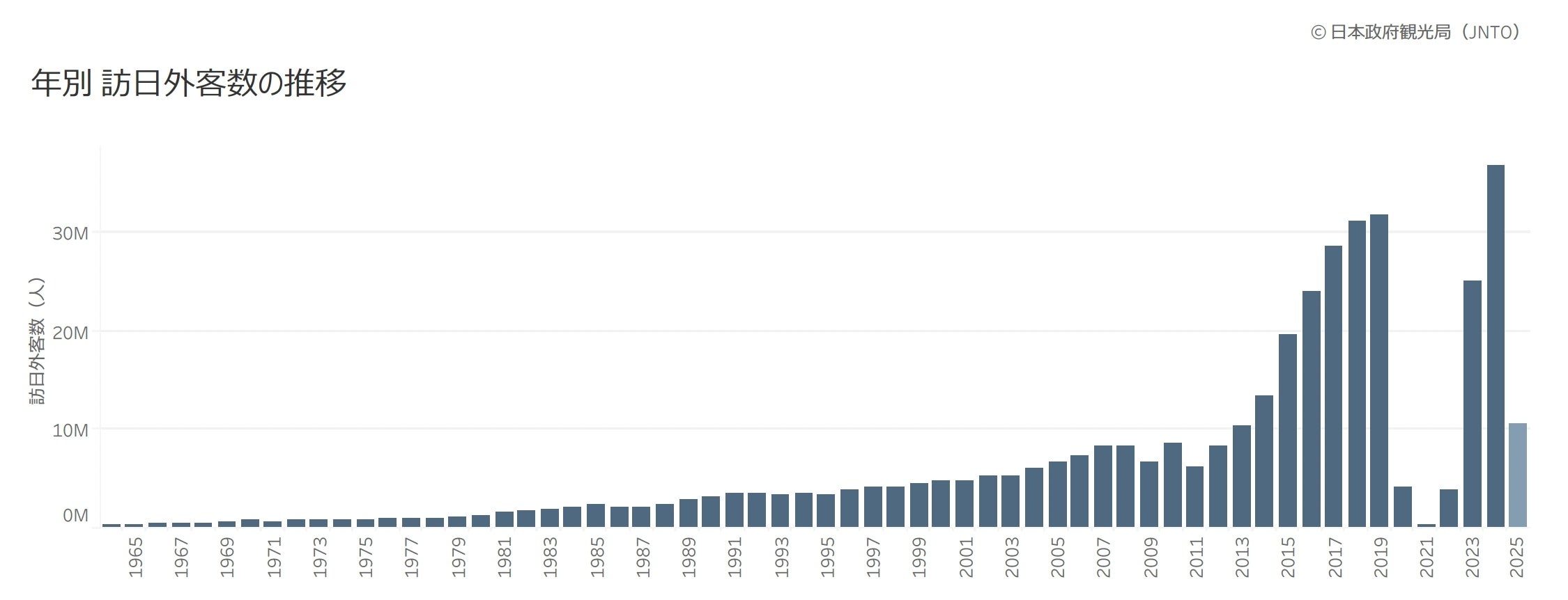 年別 訪日外客数の推移 データ更新日:2025/06/19 時点