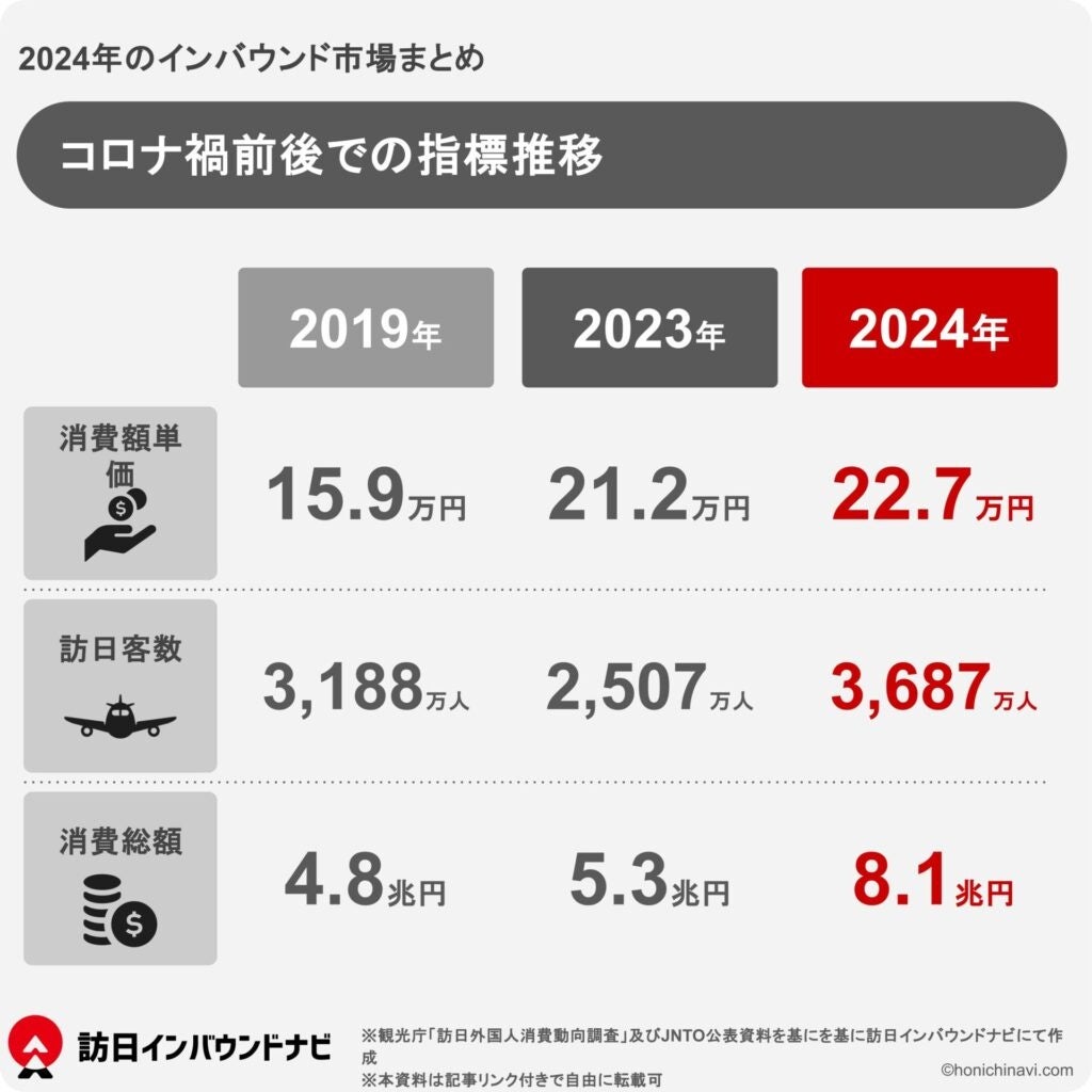 2024年は1ドル=151円前後の円安環境が続き、この影響で消費総額が大幅に伸びた側面があります。