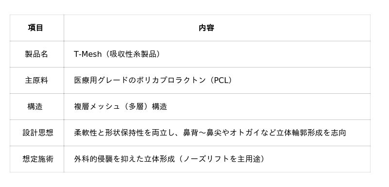 株式会社コンヴァノ(本社:東京都渋谷区、代表取締役社長:上四元 絢、証券コード:6574)は、連結子会社である 株式会社シンクスヘルスケア(本社:東京都港区、代表取締役:戸高 大志)を通じて、韓国 HM Solution Co., Ltd.(本社:京畿道城南市、代表:盧 熹文)が開発した 鼻筋形成用糸リフト素材「T-Mesh」 の輸入代行業務を日本国内で開始いたしました。