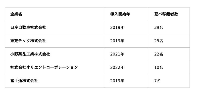 日産自動車、東芝テック、富士通、小野薬品工業、オリコの5社が継続活用!10名の「レンタル移籍」が10月より新たにスタート。