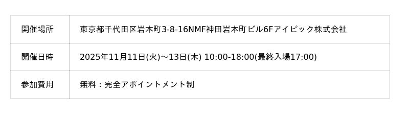 [アイピックエキシビジョン] - [アイピック株式会社]主催、[2025年11月11日(火)~13日(木)]開催!