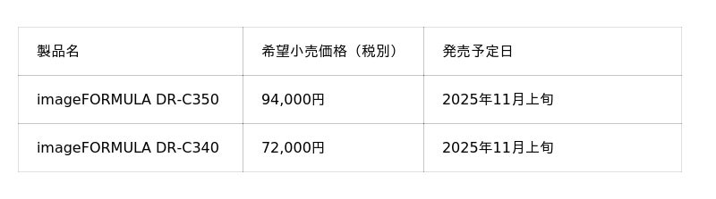 キヤノンマーケティングジャパン株式会社(代表取締役社長:足立正親、以下キヤノンMJ)は、キヤノン電子株式会社(代表取締役社長:橋元健、以下キヤノン電子)製のドキュメントスキャナー「imageFORMULA(イメージフォーミュラ)」シリーズの新製品として、“imageFORMULA DR-C350/DR-C340(以下DR-C350/DR-C340)”を2025年11月上旬より発売します。