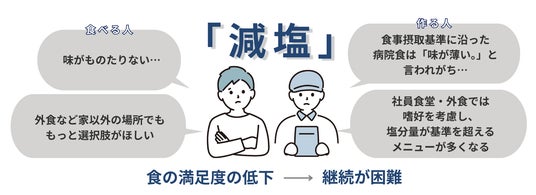 しかし、従来の減塩対策は「味が薄い」「食事が楽しくない」という課題があり 、食事を提供する側にとっても嗜好を考慮する難しさがありました 。