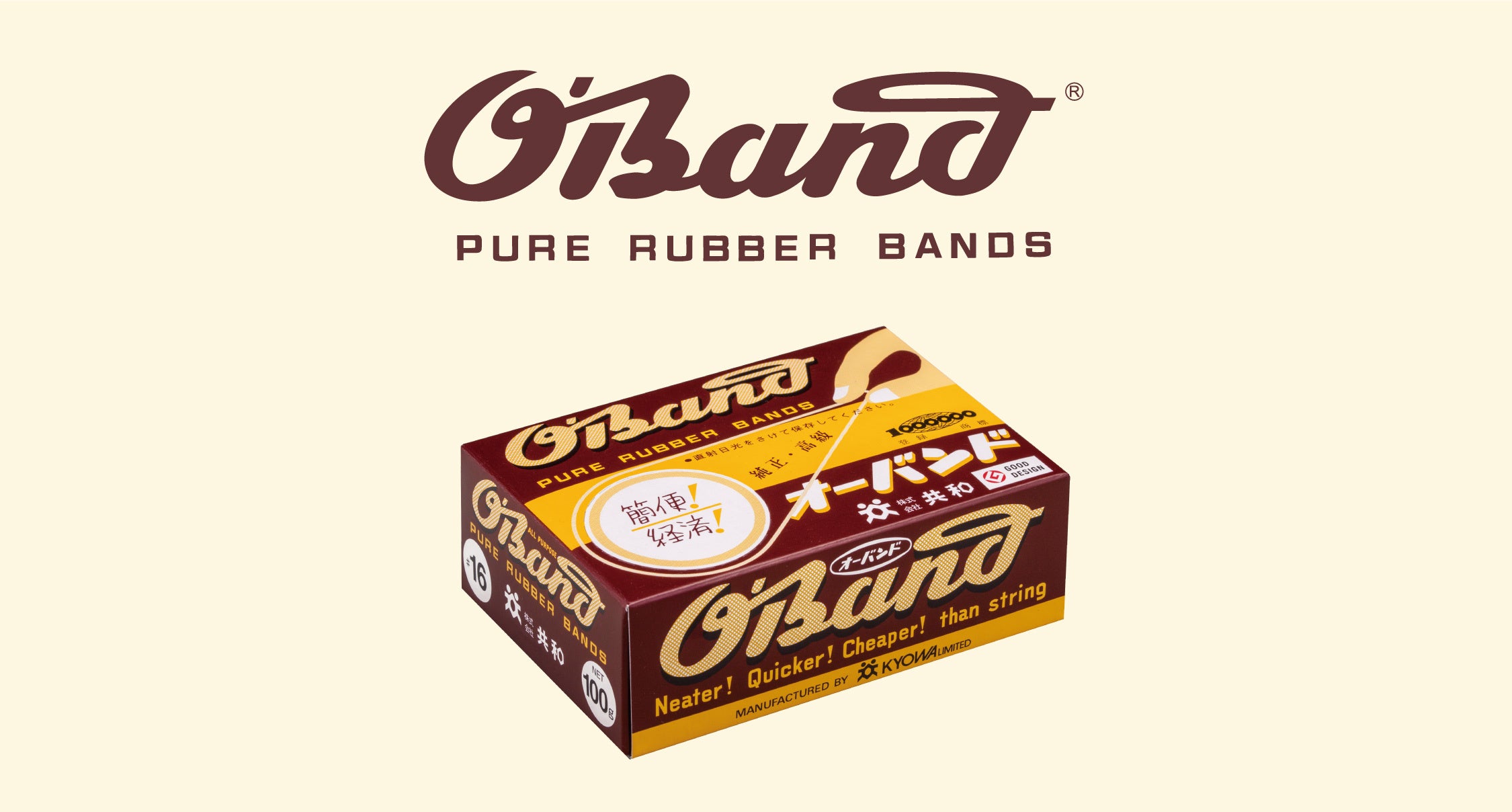 「オーバンド」は、開発から108年、商標登録から72年続く、輪ゴムのロングセラーブランドです。茶色と黄色のパッケージでおなじみの「オーバンド」は、文具店・スーパー・学校・オフィス・家庭など、あらゆる場面で活躍しています。