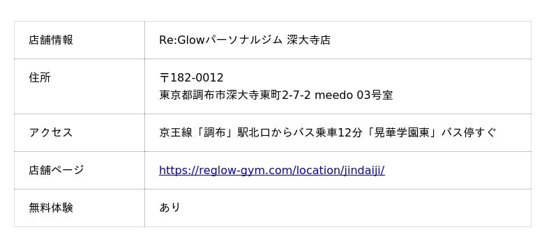 株式会社ReGlow が Re:Glowパーソナル深大寺店 をオープン!三鷹台店に続いて調布エリアにて地域の方々に向けてサービスを開始!先着制で入会金¥22,000→¥0!!