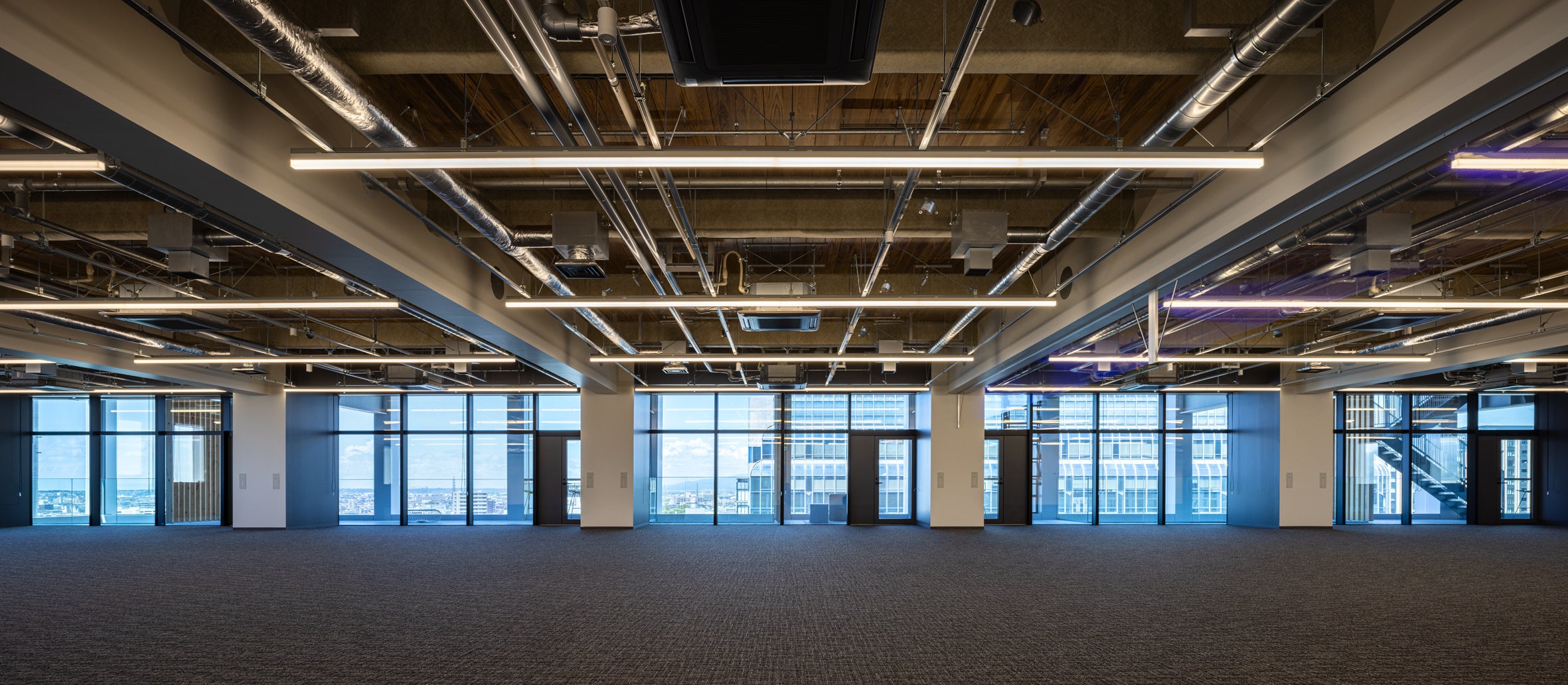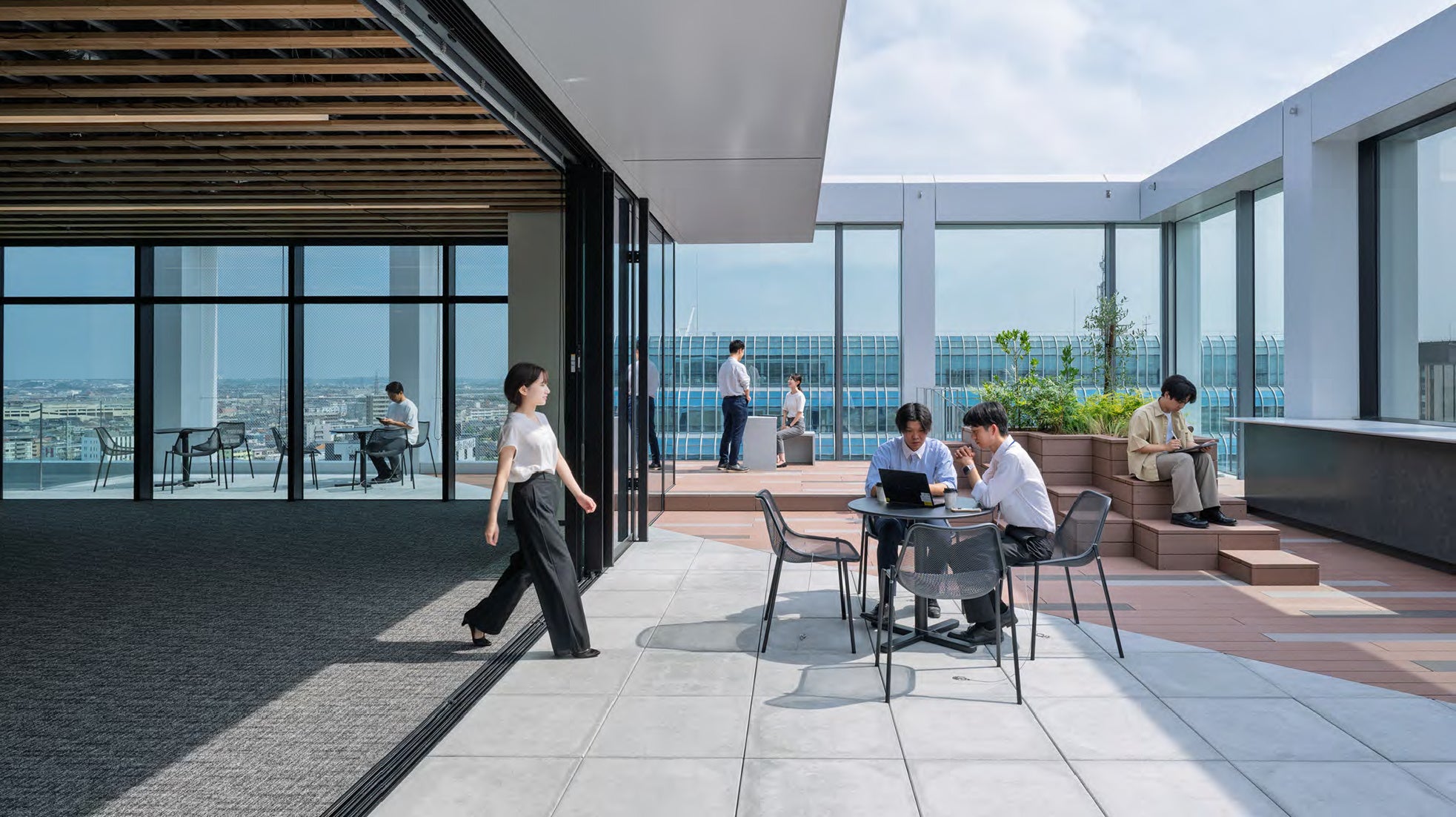13階。オフィス空間とテラスをシームレスに接続。屋内外の一体利用を可能とします。