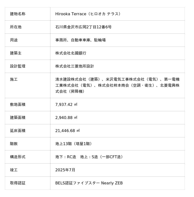 北國銀行を傘下に持つ株式会社CCIグループ(石川県金沢市、代表取締役社長:杖村 修司)と株式会社三菱地所設計(東京都千代田区、代表取締役社長:谷澤 淳一)は、北陸エリアにおける新たな交流・協創・革新を生み出す拠点「Hirooka Terrace(ヒロオカ テラス)」(石川県金沢市)が2025年7月末に竣工し、9月8日に開業を迎えましたことをお知らせいたします。