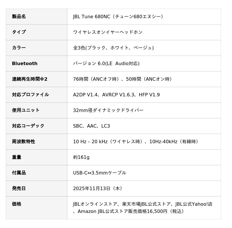 ・JBLオンラインストア https://jp.jbl.com/TUNE680NC.html