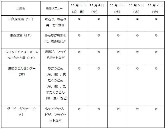 ※11月3日(祝・月)は混雑緩和のため、田久保売店(1F)はもつ煮込み、煮込み丼、ドリンク各種のみの取り扱いになっております