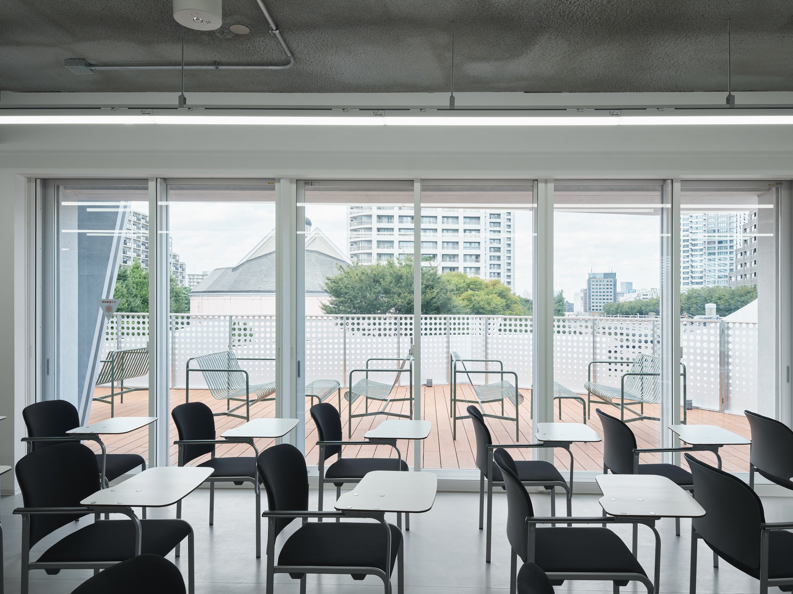 少人数授業がメインのため、小規模教室を多く確保。教室によっては直接デッキに出ることも可能 (C)Kenya Chiba