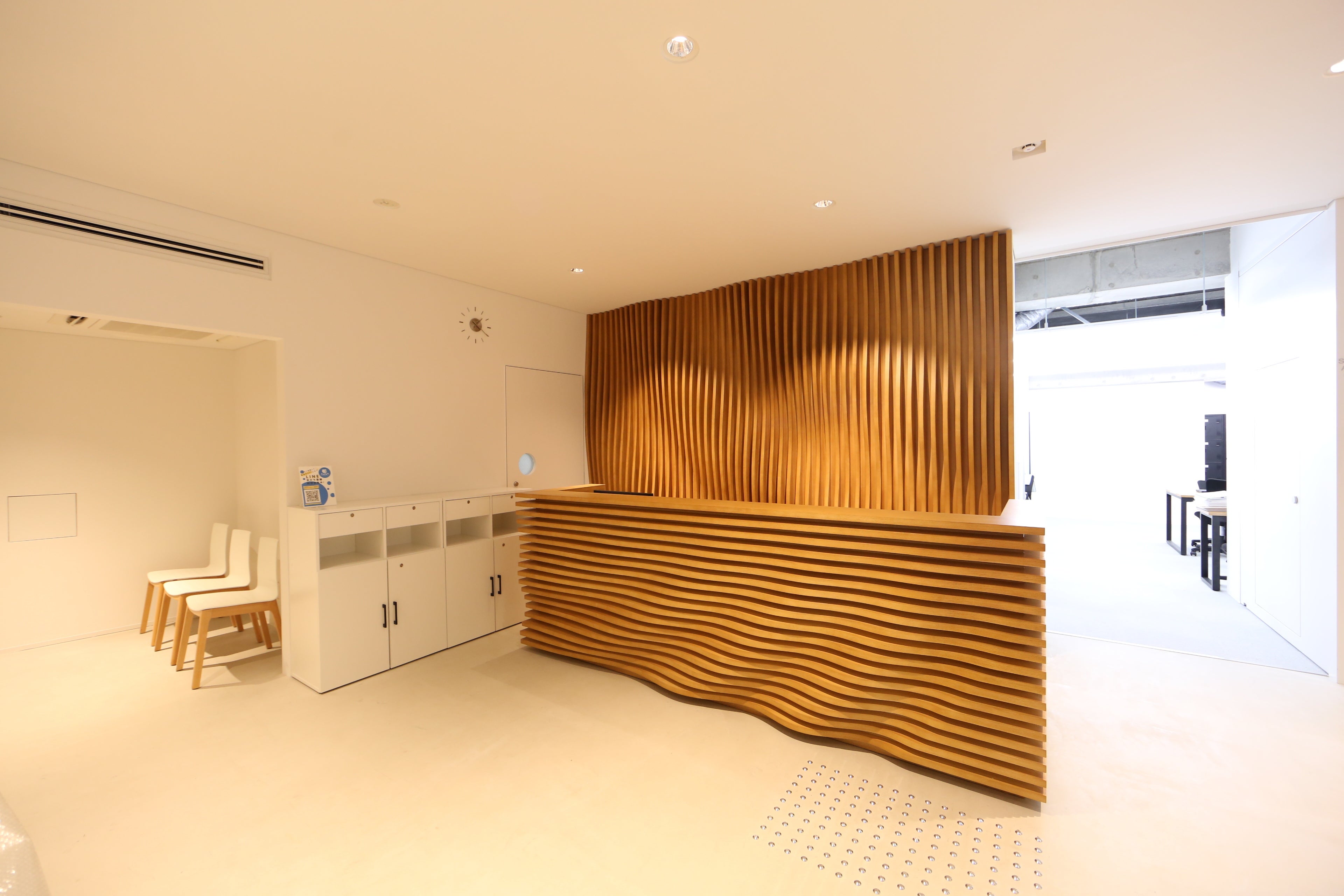 木の温もりを感じるエントランス:「航跡波」が導く未来