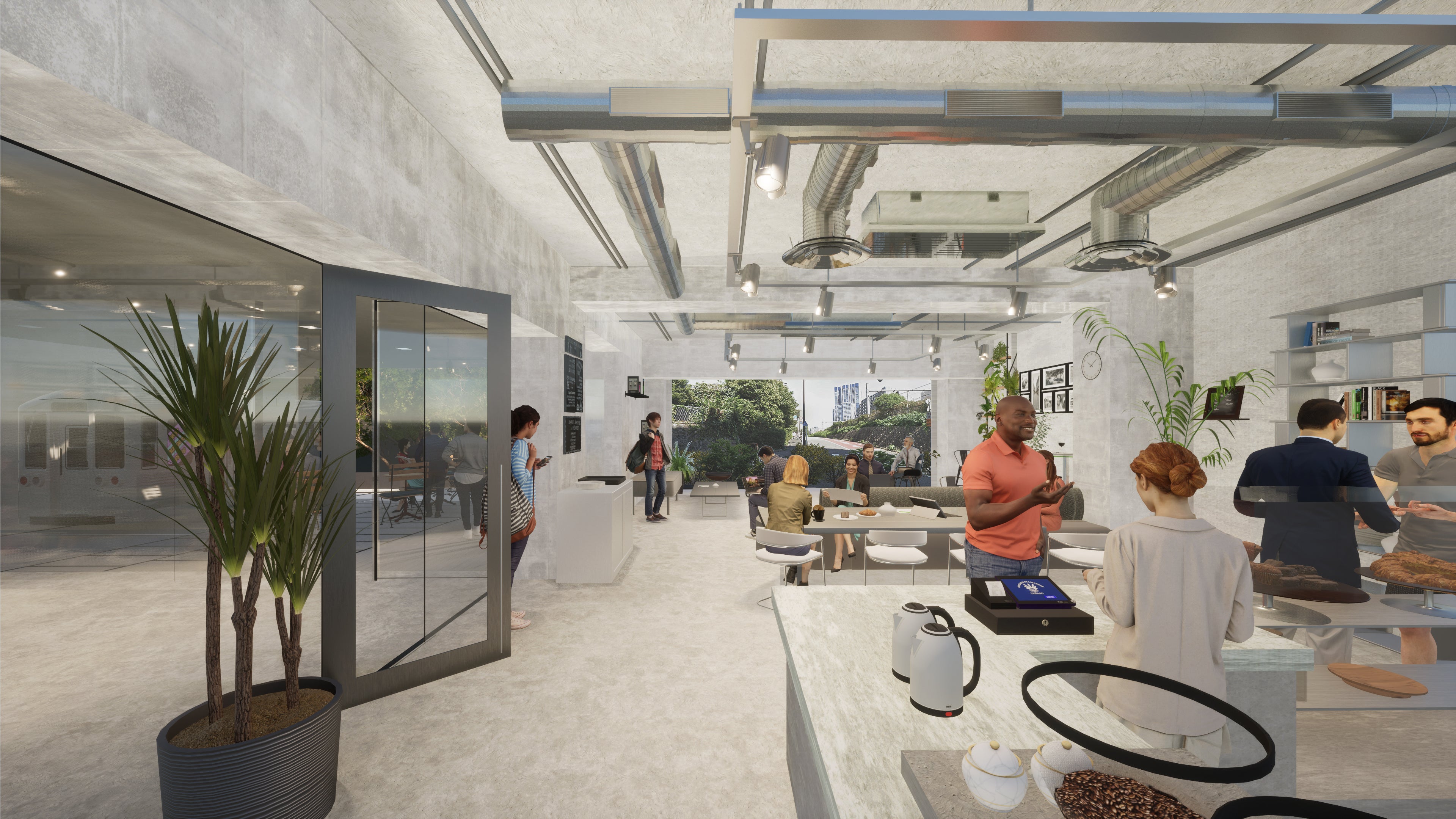 1階には学生同士の交流を促し、アイデアやイノベーションが生まれる場としてカフェをオープン予定です。