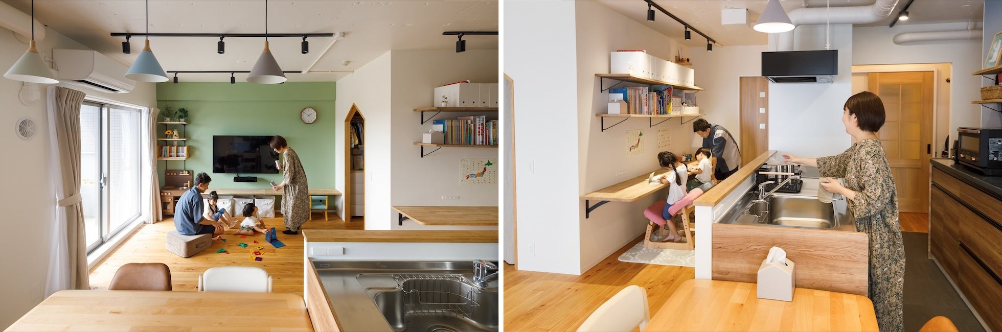 ゼロリノベの設計の特徴は、家族構成や暮らしの変化に対応する可変性と、家事・育児の両立を叶える機能的な動線設計です。可動間仕切りや回遊動線、成長に合わせて用途を変えられる収納など、変化に強い住まいを提案し、家族の長期的な安心を支えます。