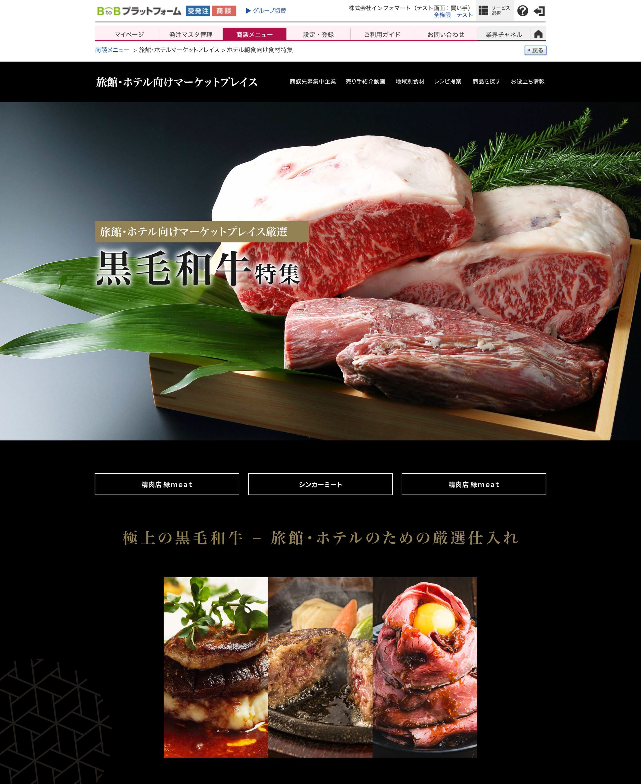 また、「旅館・ホテル向けマーケットプレイス」は、「黒毛和牛特集」や「朝食特集」等、商談・提案のテーマに沿って食材を発掘・比較できる特集コーナーを作り、商談提案が「届く」「つながる」仕組みで商談成約に向けて支援しています。宿泊施設の食材調達担当者からも「提案を受けやすくなった」との声を多数いただいており、食材調達業務のデジタル化の効果を実感していただいています。