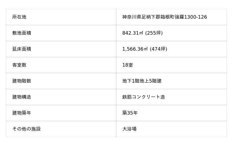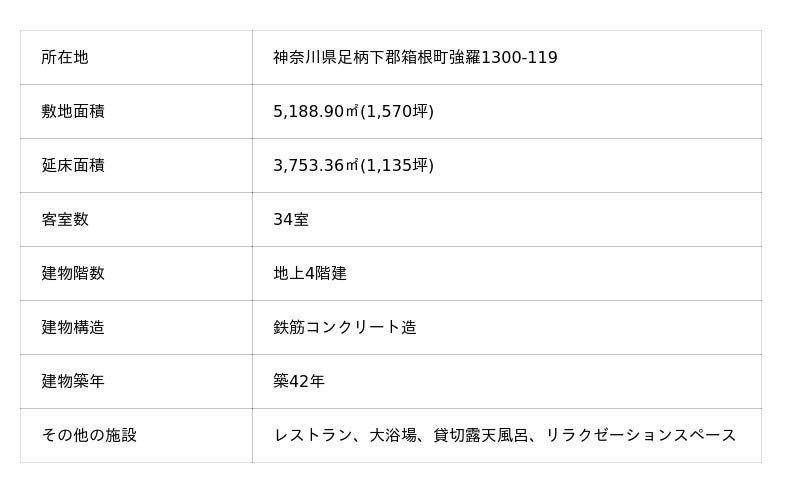 本物件が所在する箱根強羅エリアは、東京近郊の格式高い別荘地・湯治場として明治時代より発展してきた歴史ある温泉地です。豊富な湯量を誇る温泉や、100年以上の歴史を持つ「大文字焼き」など、自然・文化・伝統が融合した魅力あふれるエリアとして知られています。当社は1984 年に「ラフォーレ箱根強羅 湯の棲(旧リゾートホテル ラフォーレ強羅)」を開業し、2014年に大規模改修を実施。その後も、2014年に「(旧)箱根強羅温泉 静峰閣 照本」、2017年に「強羅環翠楼」といった老舗旅館を取得し、2024年には「ラフォーレ箱根強羅 湯の棲 綾館」を新設しました。さらに近隣エリアでも新規プロジェクトを推進しています。
