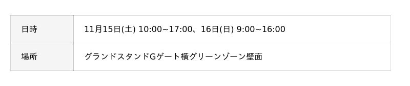 レース開催期間の予選日11月15日(土)から決勝日16日(日)にかけては、場内でテントをお持ち込みの上、キャンプ泊でレース観戦を楽しめます!