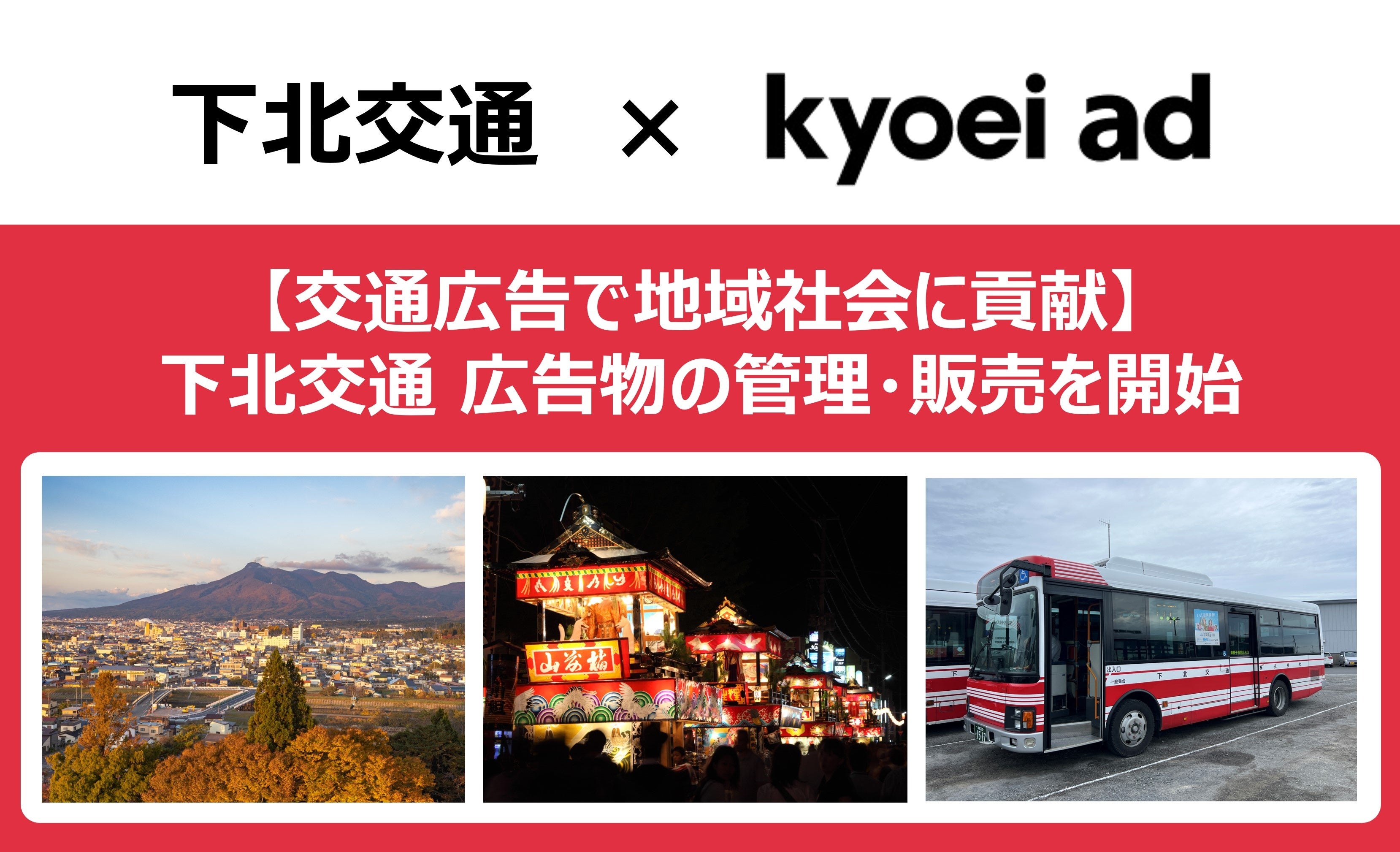 全国でエリアマーケティング事業を展開する株式会社キョウエイアドインターナショナル(本社:東京都千代田区 代表取締役:廣瀬勝巳 以下「キョウエイアド」)は、下北交通株式会社(本社:青森県むつ市 代表取締役社長:山上常廣 以下「下北交通」)が運行するバス車内外全ての広告物の管理および販売を2025年10月より開始いたしました。