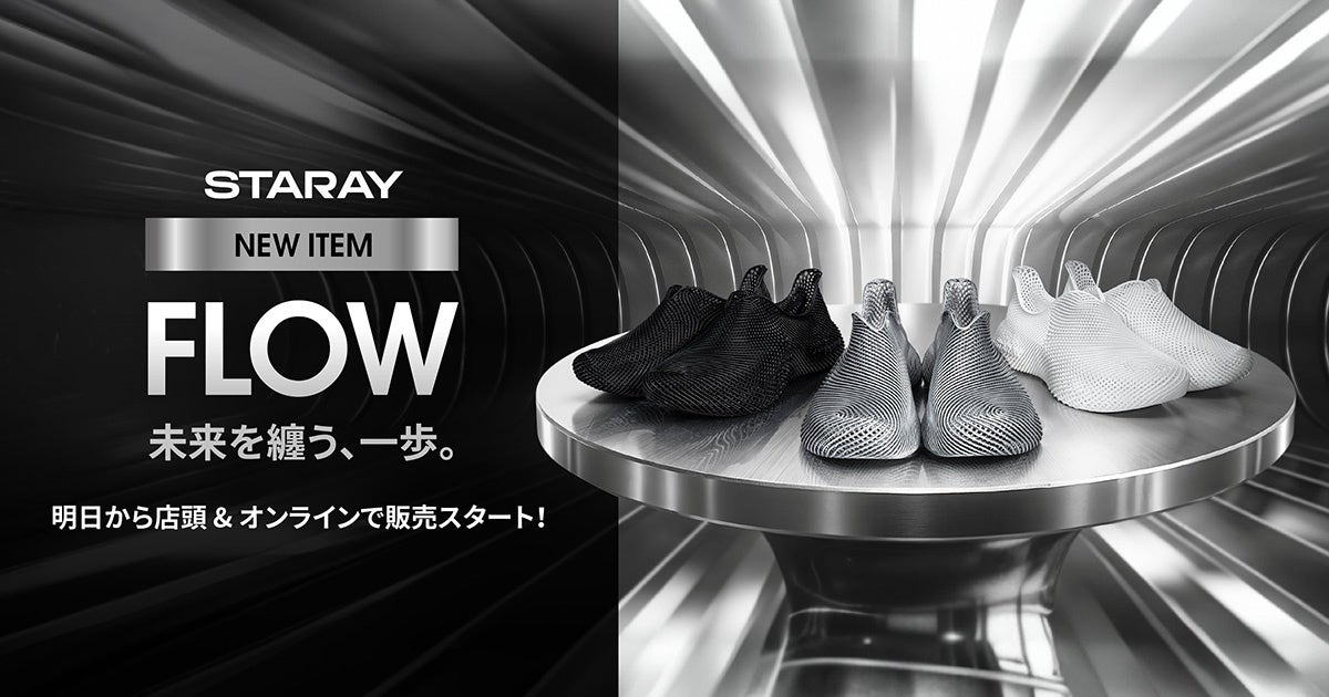 APPLE TREE株式会社(所在地:大阪府大阪市、代表取締役社長:朴 秀明)は、3Dプリントシューズブランド「STARAY」より、新モデル『FLOW(フロー)』を2025年11月1日(土)に発売いたします。
