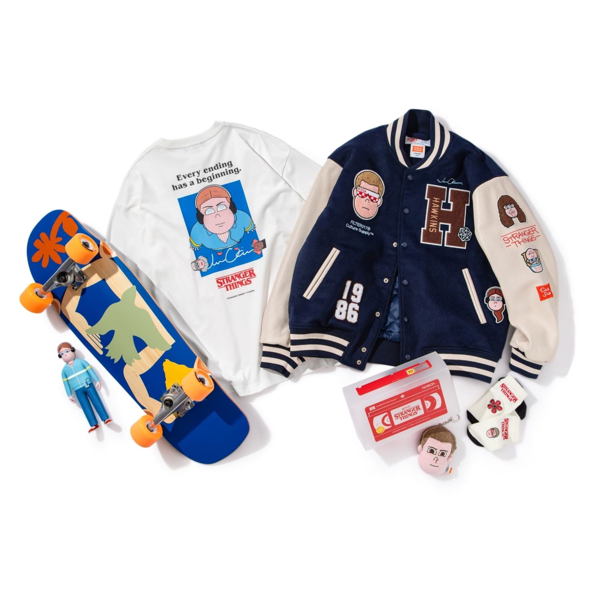 1980年代のアメリカを舞台にした『Stranger Things』の独特な世界観から着想を得て生まれた、フィギュアやパーカー、スタジャン、キャップ、トートバッグ、ピンバッジ、ステッカーなどが揃います。アーティスト・JUN OSONさんが描くユニークで親しみやすい表情のキャラクターたちは、友情や冒険といったドラマのテーマを軸に、現代のストリートカルチャーに自然に溶け込んでいきます。懐かしくて新しいスタイルをどうぞお楽しみください。