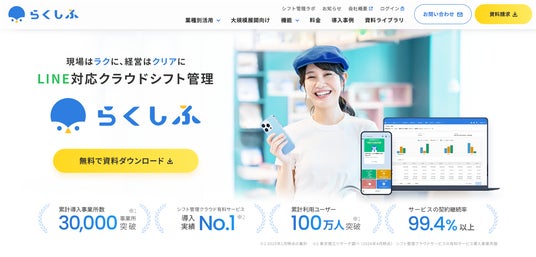 クラウドシフト管理「らくしふ」公式サイトを全面リニューアル