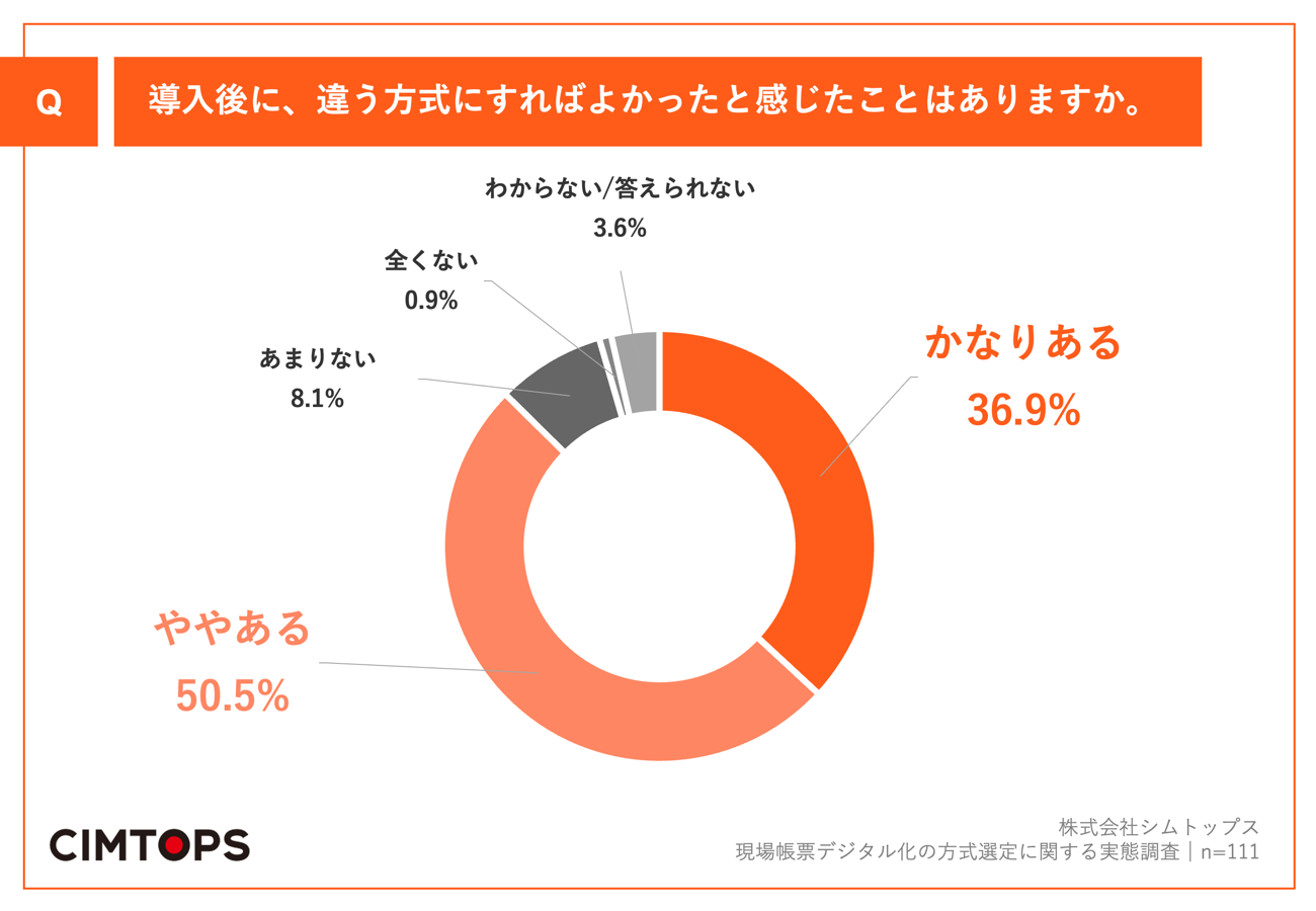 これらの課題について、「導入前に想定できていなかった」と答えた人が約半数に達しています。つまり、現場で発生する作業負荷や連携の難しさを、導入時点で十分に把握していなかったということです。