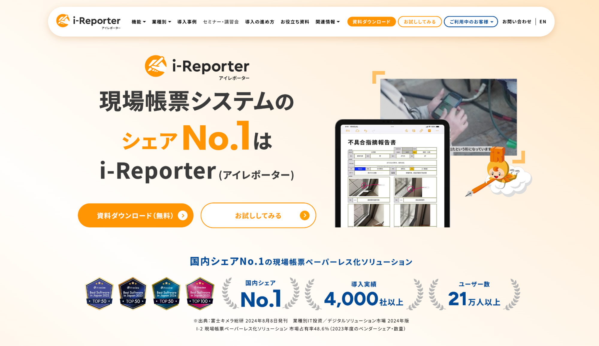 ■ノーコード現場帳票ペーパーレス ソリューション i-Reporterの開発/販売