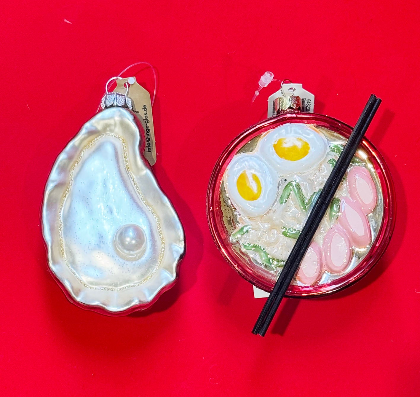 400年以上の歴史を持つ、ドイツの老舗クリスマスオーナメントブランド。職人の手で丁寧に吹き上げられています。カキやラーメンなどユーモアあふれるデザイン。